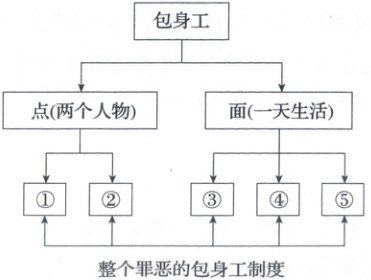 2.为了有力地表现文章主题,作者在叙述的过程中采用了点面结合的手法。所谓“点”,就是典型人物、典型事例和典型细节;所谓“面”,就是包身工的群体形象和工作状况。请根据提示完成下面的图表。
