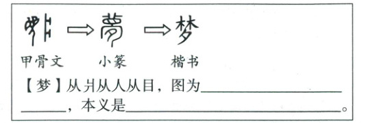 18.汉字书写“有助于学生的形象思维与逻辑思维能力的提升”,请结合“武”字的图文解析和“梦”字的图片资料,探究“梦”的含义。(4分)