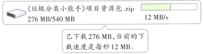 6. [新情境·下载文件]张老师需要从网盘下载容量为540 MB的项目资源包,下载界面如下图所示。