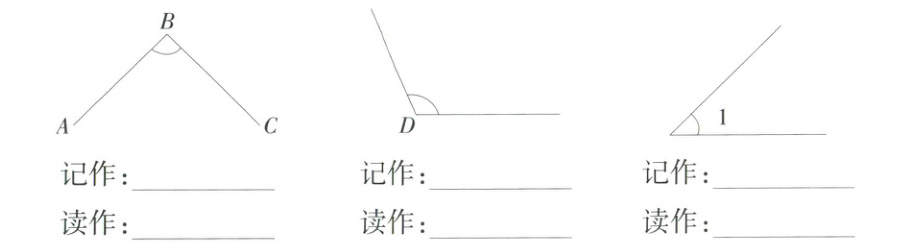 1.∠ABC(或∠B) 角ABC(或角B) ∠D 角D ∠1 角1 1 2