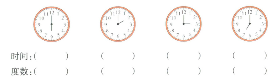 4. [习题变式] 先写出钟面上的时间,再量出时针和分针所组成的角的度数。
