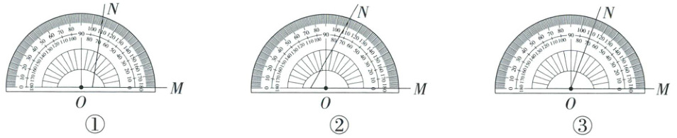 7. [习题变式] 用量角器量出下面各角并回答问题。