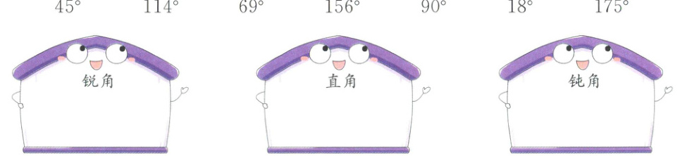 4. [习题变式]观察钟面,测量角的度数并分类。