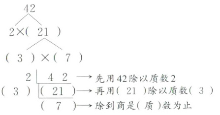 1. [例题变式] 填空题。(把42用质数相乘的形式表示出来)