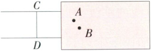 7.下图是小兰跳远后的示意图,$CD$是起跳线,$A$点是左脚的落点,$B$点是右脚的落点,如果用尺子量小兰跳远的成绩,尺子该怎样放?请你画出示意图。