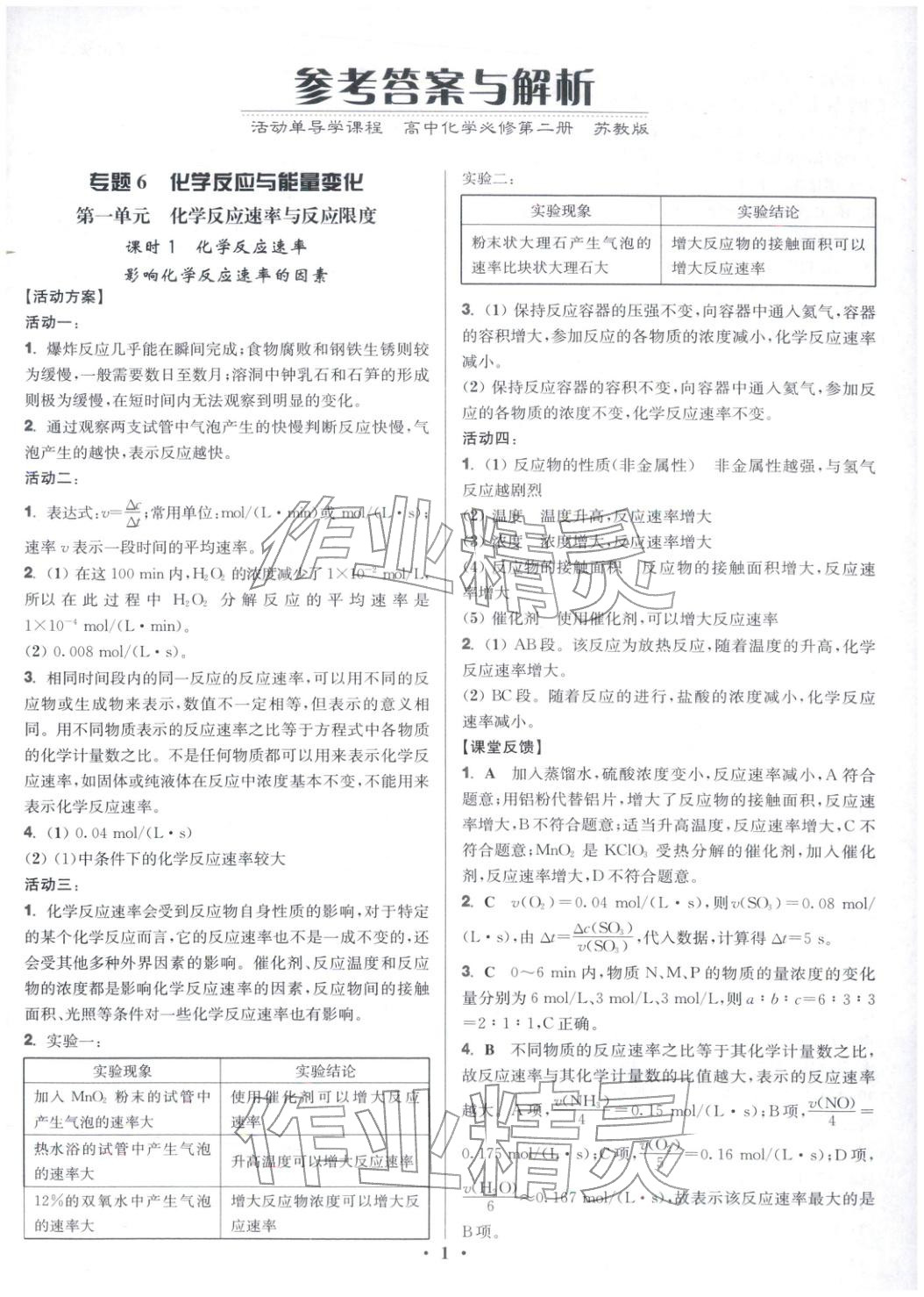 注:目前有些书本章节名称可能整理的还不是很完善,但都是按照顺序排列的,请同学们按照顺序仔细查找。练习册 2025年活动单导学课程高中化学必修第二册苏教版 答案主要是用来给同学们做完题方便对答案用的,请勿直接抄袭。
