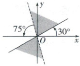 例5 [解] 终边在$30^{\circ}$角的终边所在直线上的角的集合为$S_1=\{\alpha|\alpha=30^{\circ}+k · 180^{\circ},k \in \mathbf{Z}\}$,终边在$180^{\circ}-75^{\circ}=105^{\circ}$角的终边所在直线上的角的集合为$S_2=\{\alpha|\alpha=105^{\circ}+k · 180^{\circ},k \in \mathbf{Z}\}$,因此,终边在图中阴影部分内的角$\alpha$的取值范围为$\{\alpha|30^{\circ}+k · 180^{\circ} \leq \alpha<105^{\circ}+k · 180^{\circ},k \in \mathbf{Z}\}$.