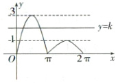 已知函数 $ f(x) = \sin x + 2|\sin x|$,$ x \in [0, 2\pi]$ 的图象与直线 $ y = k$ 有且仅有两个不同的交点,则实数 $ k$ 的取值范围是
