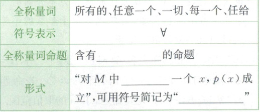 一、全称量词 任意 $\forall x \in M, p(x)$