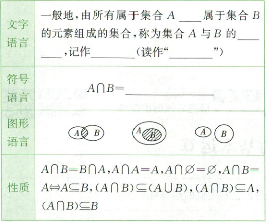 且 交集$A∩B$ $A$ 交 $B$ $\{x|x\in A,且x\in B\}$