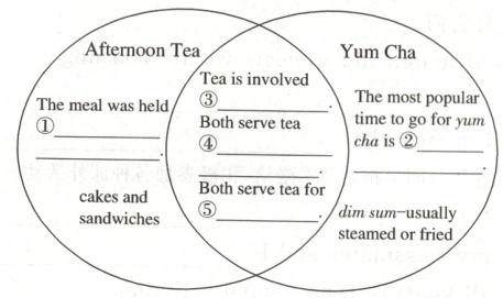 Read the two passages and find out the differ-ences and similarities between afternoon tea and yum cha.