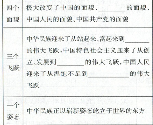 1.中华民族 强起来 完善 小康富裕 2.重要法宝 必由之路 关键一招 关键一招 3.