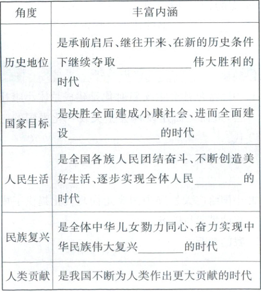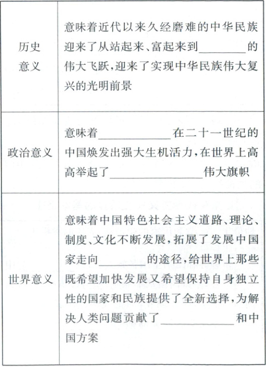 1.历史方位 2.中国特色社会主义 社会主义现代化强国 共同富裕 中国梦 3.强起来 科学社会主义 中国特色社会主义 现代化 中国智慧