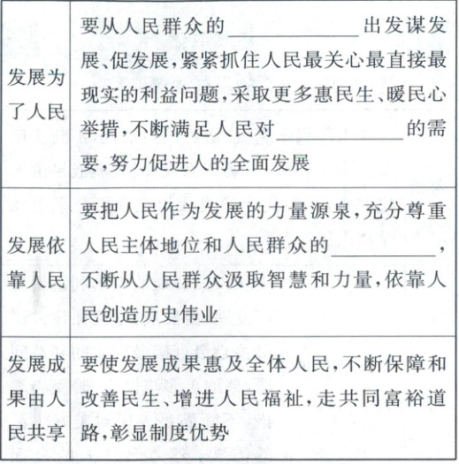 ,增进民生福祉,不断实现发展为了人民、发展依靠人民、发展成果由人民共享,让现代化建设成果更多更公平惠及全体人民。2.要求