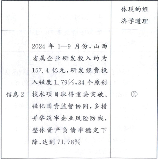 山西省某高中高一学生在项目化学习中搜集关于“山西省是如何做强做优做大国有企业”的相关资料,找到下列信息。