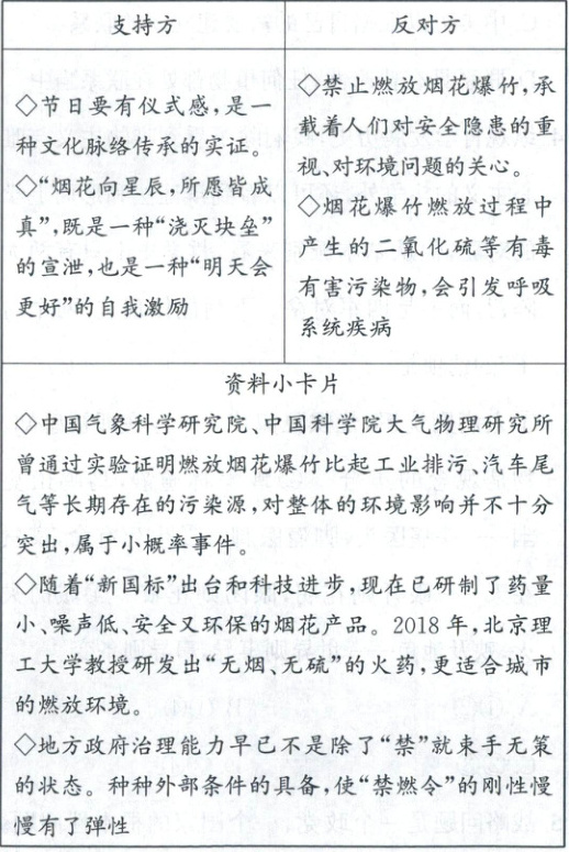 提示:①矛盾即对立统一,要坚持一分为二的观点看问题。“禁”强调生态环保、平和安宁,“放”强调文化传承、热闹愉悦,“禁”与“放”不是非此即彼的关系,是有机统一的。②联系是客观的、多样的,要坚持一切以时间、地点、条件为转移。地方政府治理能力的提升、科技的进步,种种外部条件的具备使“禁燃令”的刚性慢慢有了弹性。③物质世界是发展着的,要坚持用发展的眼光看问题。人们对烟花爆竹的认识要与时俱进,当前,“禁”的效果在显现,“放”的条件也在成熟,从“全面禁放”到“局部限放”是一个必然趋势。