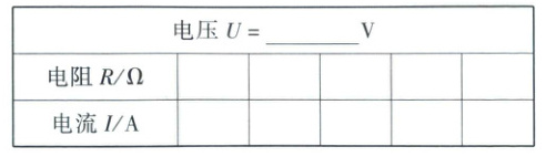 (4)实验测量:闭合开关,移动滑片,让电压表的示数为$ 2 \, V $,将此时定值电阻的阻值和电流表的示数填入表格一中,更换不同阻值的定值电阻,移动滑动变阻器滑片,保持电压表示数为$ 2 \, V $不变,进行多组数据测量并将数据填入表格一中。