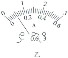 (3)排除故障后,闭合开关,调节滑动变阻器的滑片,当电压表的示数为$0.5\ V$时,电流表的示数如图乙所示,读数为
