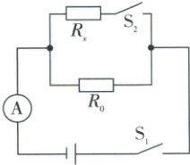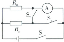 ,测出电路中的电流为$I_2$。(3)请写出用测量值$I_1$、$I_2$及$R_0$来表示$R_x$的表达式:$R_x =$