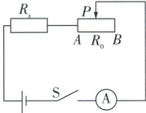 5. 小亮同学利用一个已知最大阻值为$R_0$的滑动变阻器、电流表、电源(电压未知)、一个开关、若干导线,设计了如图所示的电路,来测量未知电阻$R_x$的阻值,请帮他将实验步骤补充完整。