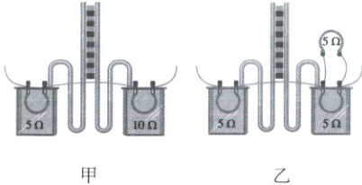 6. (人教版九年级 P120 图 18. 4 - 2、P121 图 18. 4 - 3) 如图是探究“电流通过导体时产生的热量与哪些因素有关” 的实验装置, 两个透明容器中密封着等量的空气。