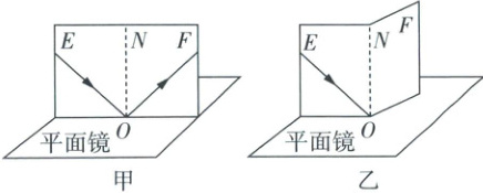 (3)在图甲实验的基础上,以 ON 为轴,把纸板 NOF 向后折,在纸板上看不到反射光,如图乙所示,这表明:在反射现象中,反射光线、入射光线和法线在