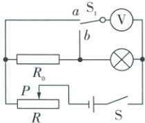 【解析】闭合开关S,将$S_{1}$拨到触点b,移动滑片,电压表测小灯泡电压,使电压表的示数为$U_{额};$再将开关$S_{1}$拨到触点a,电压表测小灯泡和$R_{0}$总电压,保持滑片的位置不动,读出电压表的示数U;根据串联分压的特点,此时$R_{0}$两端的电压为$U_{0}=U - U_{额},$则此时电路电流即灯泡正常发光通过的电流$I = \frac{U - U_{额}}{R_{0}},$则小灯泡的额定功率$P_{额}=U_{额}\frac{U - U_{额}}{R_{0}}。$