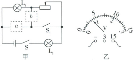 (1)如果a框内是开关$S_{2},$闭合开关$S_{1}$和$S_{2},$灯泡$L_{1}$和变阻器被短路,所以a框内是电压表。