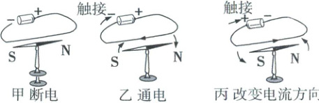 3. (人教版九年级 P152 问题改编)如图甲、乙所示,在导线触接通电时,导线附近的小磁针发生了