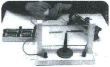 2. (人教版九年级 P151 图 20.1 - 13)小明同学用橡皮泥和大头针制作底座,把两根缝衣针磁化后,穿过按扣的两个孔,放在底座的针尖上,就制作成了一个如图所示的指南针。指南针能指地理的南北极,是因为受到了