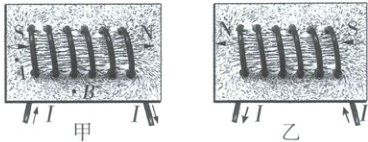 。(3)对调电源的正负极重复上述实验,现象如图乙所示。这说明通电螺线管的极性与