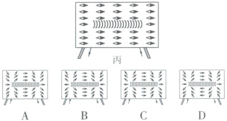 。(6)小明在螺线管周围的玻璃板上整齐、均匀地放置了$32$个小磁针,如图丙所示。给螺线管通电后,小亮观察到这$32$个小磁针的指向更接近于下图选项中的