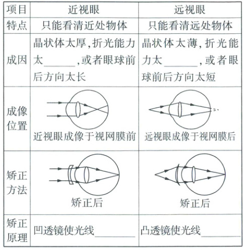 1. 眼睛的成像原理:晶状体和角膜的共同作用相当于一个