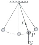 1. (2024 聊城 )如图所示,把一个质量分布均匀的小球用绳子悬挂起来,将小球拉到一定高度稳定后松手。画出小球在摆动过程中经过 $P$点时所受力的示意图。(忽略空气阻力)