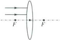 11. (2025 广东省卷 )请在图中画出平行于主光轴的两条入射光线经过透镜折射后的光线。