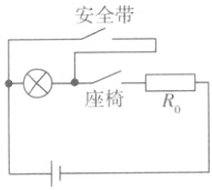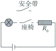 5. 汽车的座椅和安全带插口各相当于一个开关,人坐在座椅上时,座椅开关闭合,指示灯亮$;$将安全带插入插口时(这时插口开关闭合 ),指示灯又熄灭。请将如图所示(其中的 $R_0$是在安全带开关闭合时,可以防止电路短路 )的元件连接成一个符合要求的电路图。