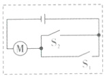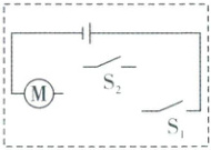 6. (2025 广东省卷 )小明家的智能门锁,可通过指纹识别开关 $S_1$或密码识别开关 $S_2$控制电动机开锁。请在图中完成其简化电路设计。