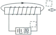 7. (2025 陕西 $A$卷 )如图,请在虚线框中标出电源右侧的正负极和小磁针左侧的 $N$、$S$极。