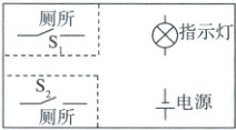 4. 在火车上发现车厢后面有两个厕所,只有当两个厕所的门都关上时,车厢指示灯才会发光,指示牌才会显示“厕所有人”字样。请你把图中各元件符号连接成符合上述设计要求的电路图。