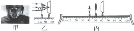。(3)如图丙所示,将凸透镜固定在 $5 0$ $c m$ 刻度线处,蜡烛移动到 $2 0$ $c m$ 刻度线处,