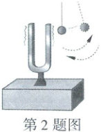 2.(北师大版八上P68图3.1 - 2丙)如图所示,系在细绳上的乒乓球在竖直方向静止不动,将正在发声的音叉慢慢靠近并接触乒乓球,观察到乒乓球被反复弹开,说明声音是由物体