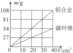 6. (北师大版八下 P11 自我检测 3 题改编)制作航天器部件的材料常需要满足“低密度、高强度”等条件。航天小组的同学们调查了铝合金和碳纤维两种材料,其质量与体积的关系如图所示。分析图像可知 (
