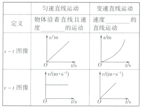 $ km/h$。(4)公式:$v = \frac{s}{t}$。变形式:求路程$s = vt$,求时间$t = \frac{s}{v}$。