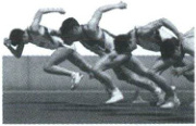 5. (人教版八上 P20 图 1. 3 - 1)如图所示是运动员百米赛跑时的场景。同学们一般看谁跑在前面就认为谁的速度快,是根据