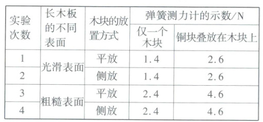 1. 实验器材:表面粗糙程度不同的长木板、长方体木块、弹簧测力计、砝码等。