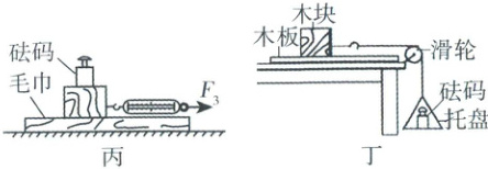 (6)在实验后交流的过程中,小华设计的实验装置如图丁所示,实验时,在托盘中放入适量的砝码,使木块做匀速直线运动。为了测木块所受的滑动摩擦力,需要测量的物理量是