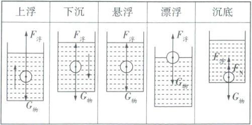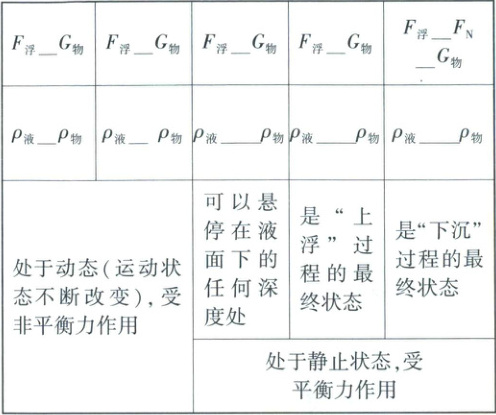 4. 决定浮力大小的因素:物体在液体中所受浮力的大小,与它浸在液体中的