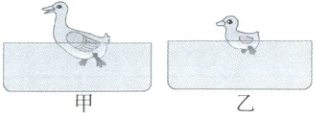 6. (沪科版八年级 P225 作业 3 题改编) 如图所示,水平桌面上两个相同的玻璃缸装满了水,水中分别漂着大、小两只玩具鸭,甲、乙两图中水对缸底的压强分别为$p_1$、$p_2$,缸对桌面的压强分别为$p'_1$