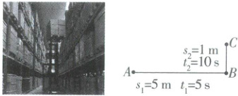 3. (沪科版八年级 P234 例题改编)电动叉车欲将货物从 A 点运往 B 点并举高至 C 点,过程如下:首先托着重量为 6 000 N 的货物,用时 5 s 从 A 点匀速水平移动到 B 点,又从 B 点匀速竖直提升 10 s 到达 C 点,所用时间及各点间距离如图中所示,问电动叉车将货物从 A 运到 C 的过程中,叉车对货物的支持力做的功为