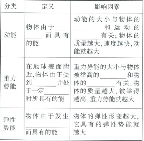 1.运动 质量 速度 重力 高度 高度 质量 弹性 形变